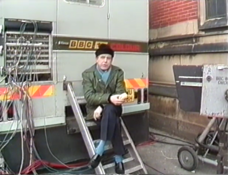 It also feels like pure television. What television was made for. The mechanics of TV production themselves are on display throughout, with Magnus and the BBC team capturing all the action as it happens in the scanner van, and a wide-angle shot of the lecture hall including the hand-held camera operator lining up to capture the entry of the irate Boilerman from stage left. Video camera trickery of the day abounds, with Benny’s bike reversing from a ‘No Entry’ passageway, footballs bouncing in and out of his gymnasium goal, and the quartered screen as the luckless youth looks on with disdain at Simon’s pointless athletic prowess. There’s the TV jokes too, which I’m sure you’ll all get. When the postgraduate researcher asks Magnus Magnusson if he has seen Benny, he replies “Pass”. Magnus’ narration even opens with “There are a million stories in the Second City. This is just one.” That’s two references packed into one line!