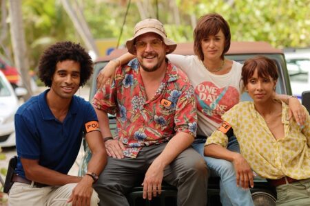 I am, instead, devoting this blog to Tropiques Criminels (France 2, 2019-present, hereafter TC), known in English as Deadly Tropics. For those unfamiliar with the Francophone series– and only three of the six series are available in my region as of the time of writing, I should note– it is a (mostly) light drama which is both set and shot on the French Overseas Territory Martinique. It follows Commander Mélissa Sainte-Rose (Sonia Rolland), the officer referenced above. Her husband was a corrupt police officer so she left Paris for Martinique with her children from a previous marriage after he was imprisoned. She commands what in English would be termed the homicide division and is a thoughtful, methodical investigator. Her immediate subordinate (and de facto partner) is Captain Gaëlle Crivelli (Béatrice de la Boulaye), an impulsive if troubled woman who is also very good at her job. Together, they solve murders and engage in romantic relationships with men who inevitably turn out to be deceptive or badly-matched or are killed off.